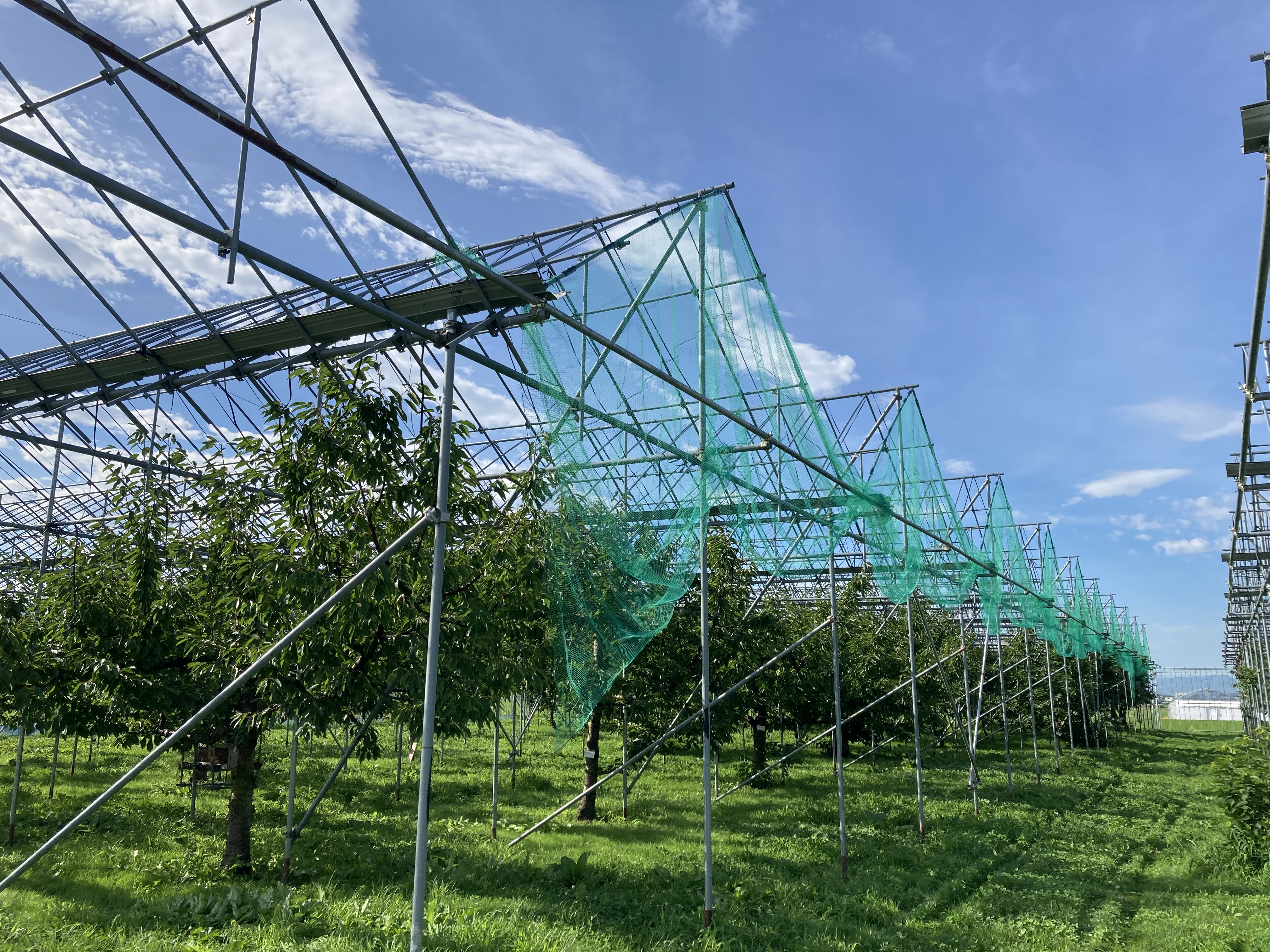 Uターン組で非農家出身の認定新規就農者/苗木を植えたばかりの桃畑/3年目の桃畑/サクランボの雨よけハウス